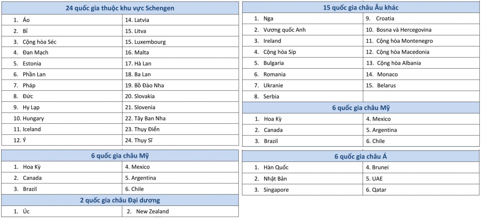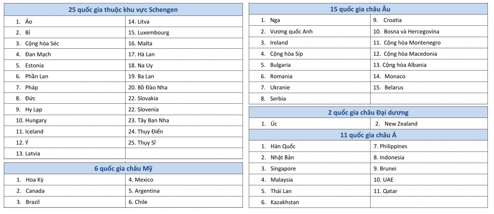 VII. Hiệp định miễn thị thực song phương với Trung Quốc